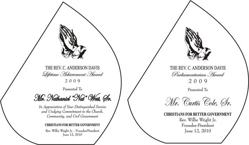 This award is presented to an individual who has maintained an undying and an uninterrupted commitment to the Church, Community, and Civil Government for the past twenty (20) consecutive years.